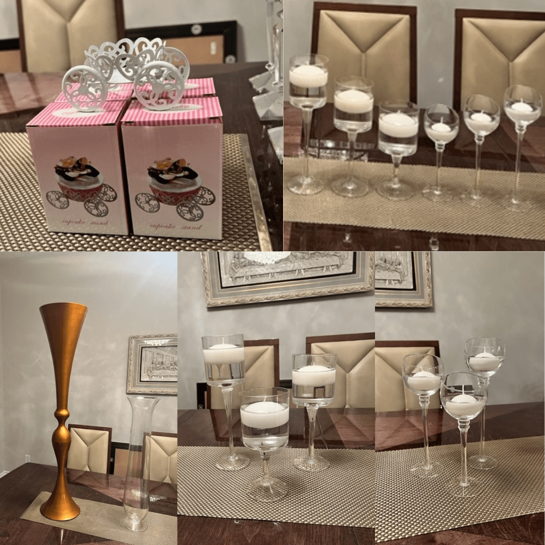 Decorations also available to rent. Vases and candle holders. Images of decorations below. Contact us to book a meeting and discuss available options.